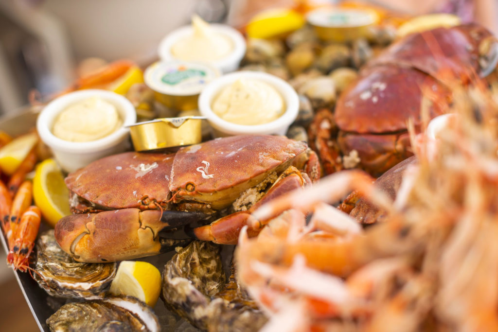 Assiette de fruits de mer avec sauces.